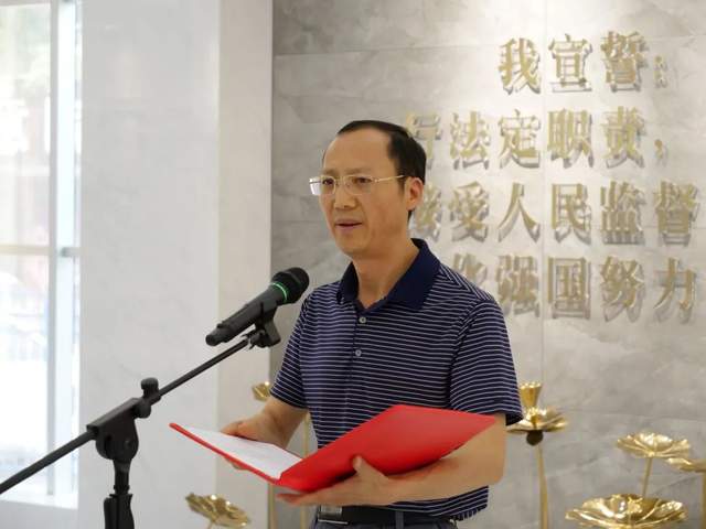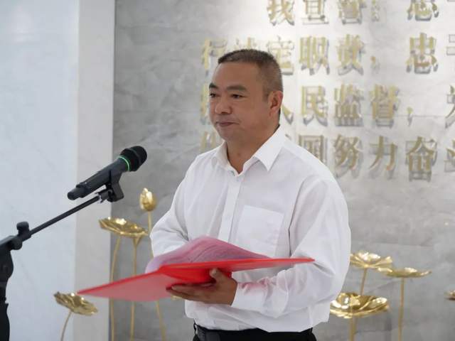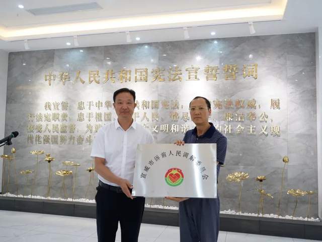 宣威市司法局党组书记、局长展云俊为“宣威市诉前人民调解委员会”授牌,特邀调解员朱泽同志作为代表郑重接牌并表态发言。