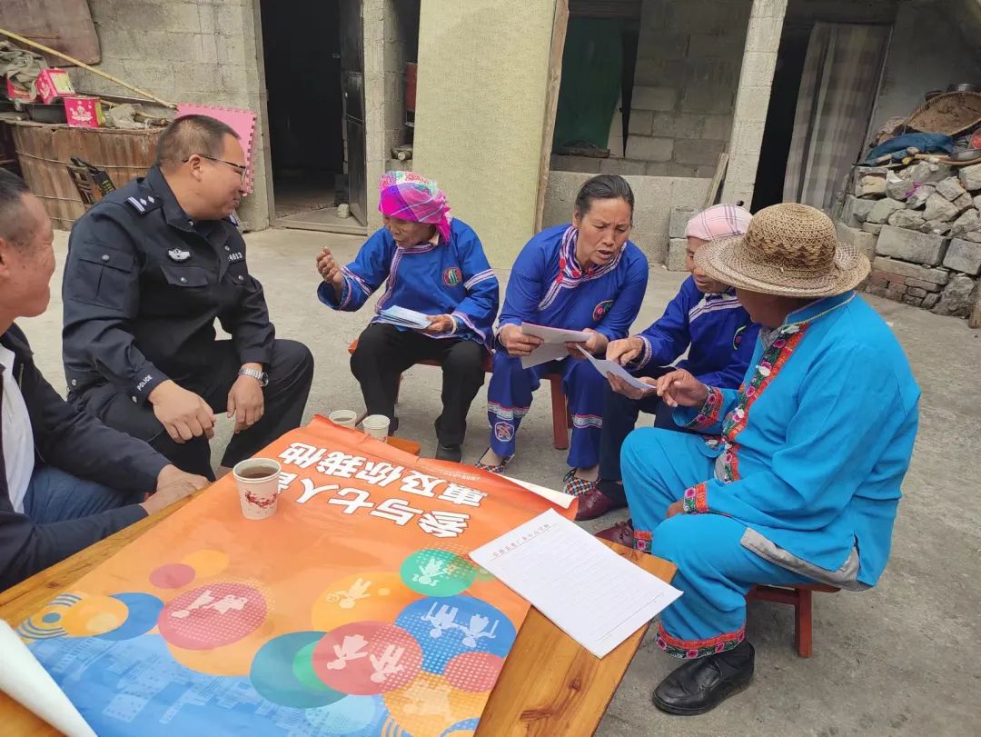 针对水族老年群体文化程度低,法律意识淡薄等问题普遍存在,富源县公安局老厂派出所结合辖区实际,打破传统宣传的常规,主动到辖区水族群众聚集的新保村委会乐额下寨村,和“老水族”们一同开展少汉语、水语“双语”普法宣传活动。